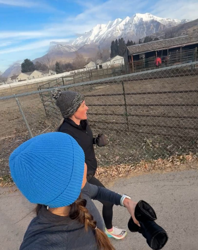 `1. On Friday, we joined in for part of Emilee’s long run/workout. 2-mile warm-up, 7:35, 7:08, 6:37, 7:17 (this is where Jess and I flipped back to the car, but they kept chopping down the paces). 13 miles total at 7:47 pace, which is my longest run (I think) since the marathon.