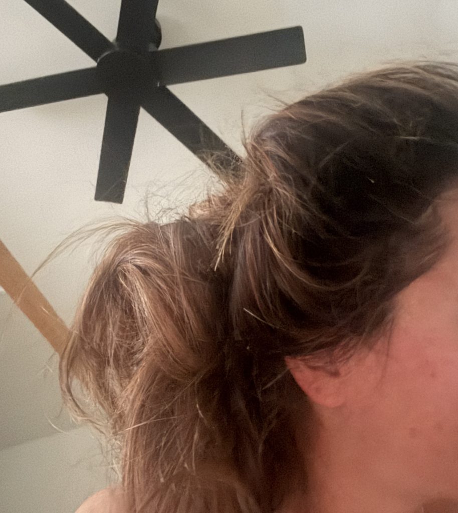 My morning hair. One thing about my dissolvable progesterone that I take, besides it knocking me out for 8 hours each night, is that it makes me have the wildest dreams. WILDEST. I feel like I’m part of a Marvel movie or some beyond-dramatic film every night now.