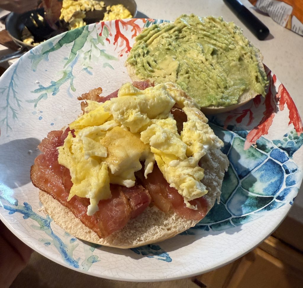 Breakfast sandwiches on a bagel at our place.