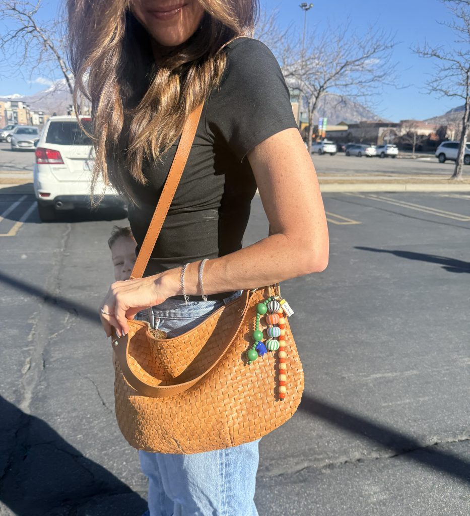 *Here is a pic of the bag Andrew got me for my birthday, since you only turn 40 once;). I copied my friend, Jess, because it looked so amazing on her. It’s just the best. I got these beads, too. I’m excited to try out different straps, too! Don’t mind my deodorant marks.
