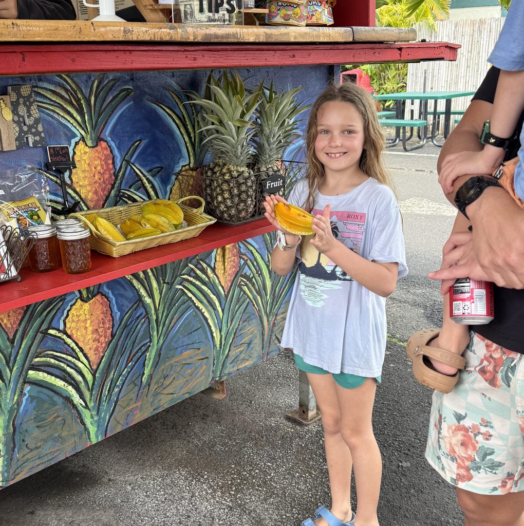 We have stopped at over 10 fruit spots to find starfruit for Skye with no luck until this spot… We bought them all. It’s her favorite food ever.