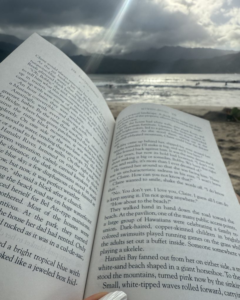 *I love to read everywhere, but I really love reading on the beaches here. It’s the most peaceful place. I was reading at Hanalei Bay yesterday when my book began to talk about the character’s trip to this exact spot! What are the odds?