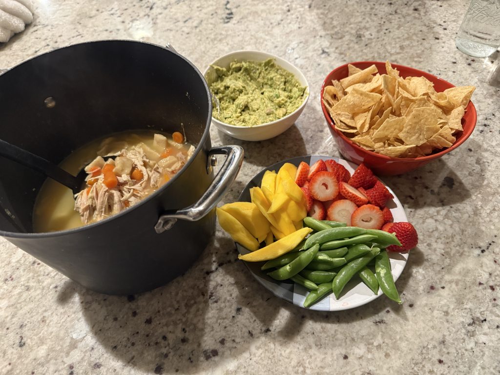 Skye requested our favorite homemade chicken noodle soup for dinner. Guacamole also had to happen because I had the most perfect avocados.