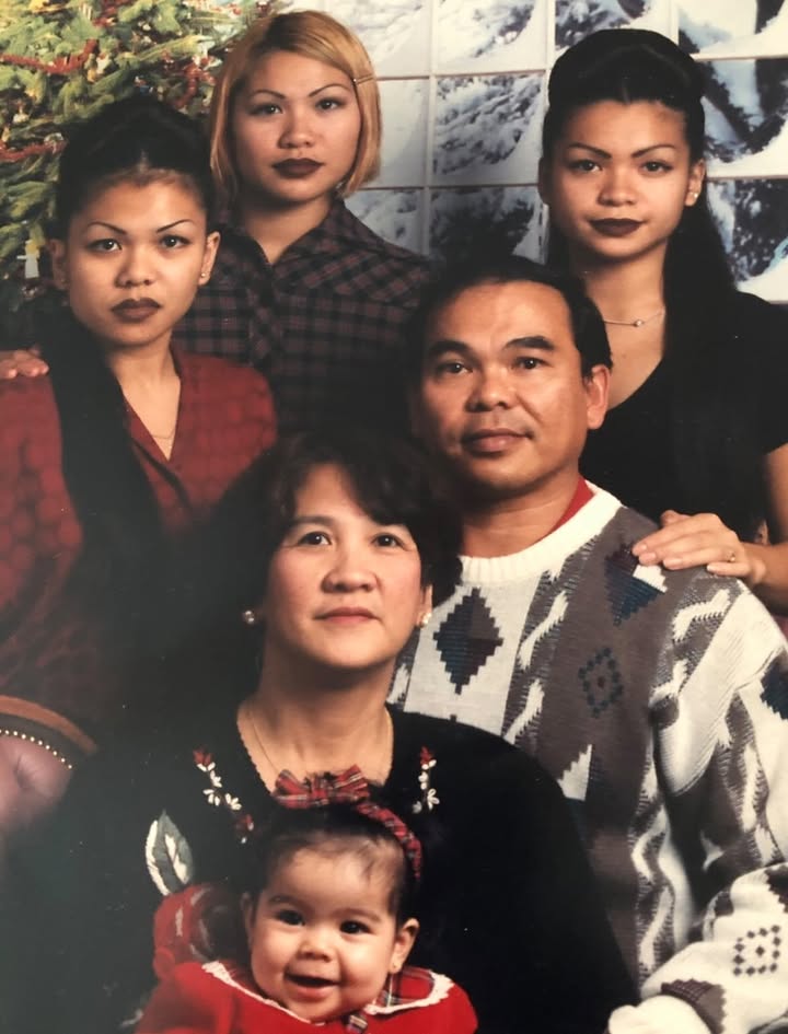 “1998, Solano Mall in Fairfield, CA. My parents were not pleased that me and my sisters went with the vampire lipstick for our family portrait.”