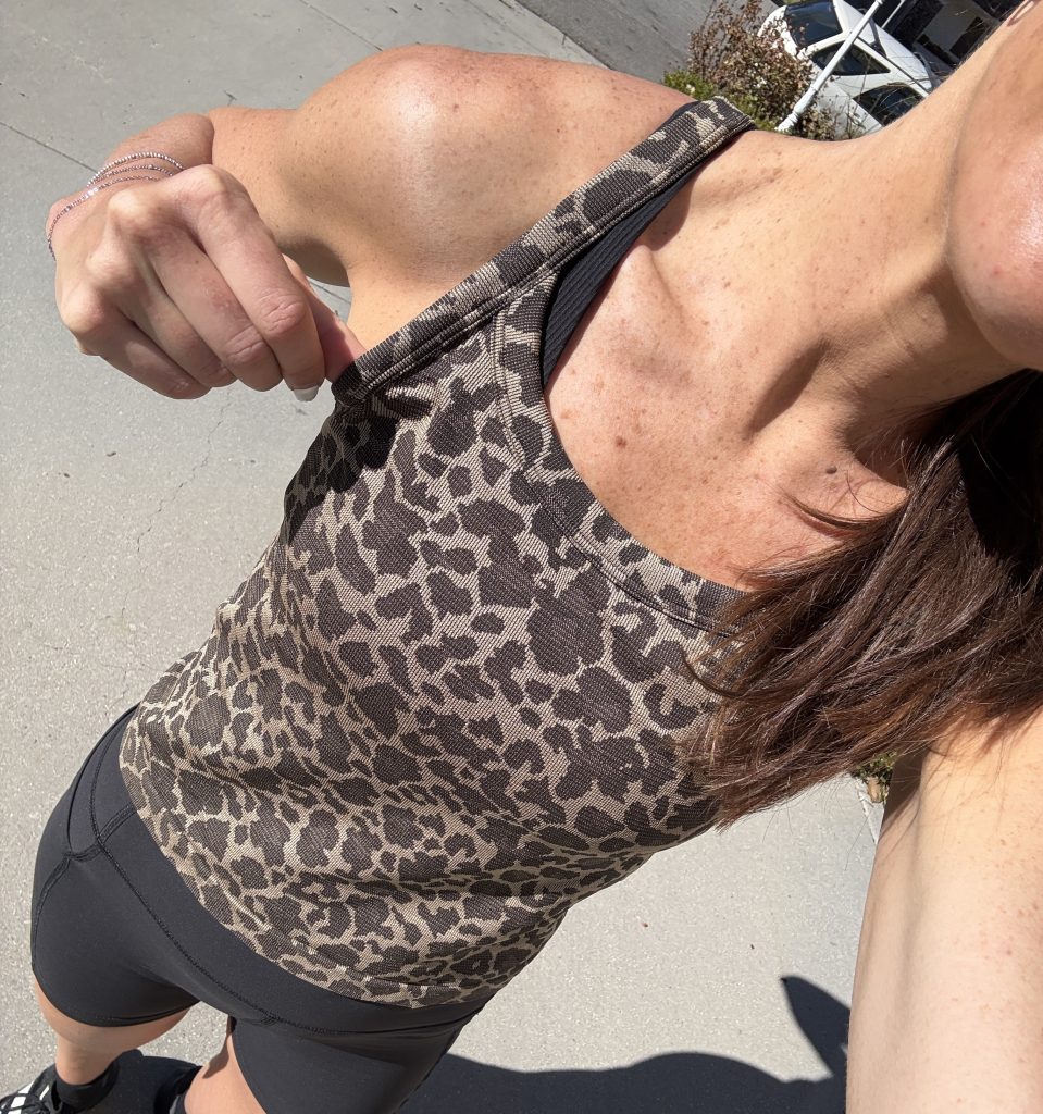 I tried out the Swiftly Cami Tank for the first time, and I couldn’t love it more. It has a bit more structure to the fabric than the normal Swiftly tanks, which makes it a bit more flattering. I also love the thin straps, and you can’t go wrong with leopard print. I also got it in red because I loved them so much when I tried them on.