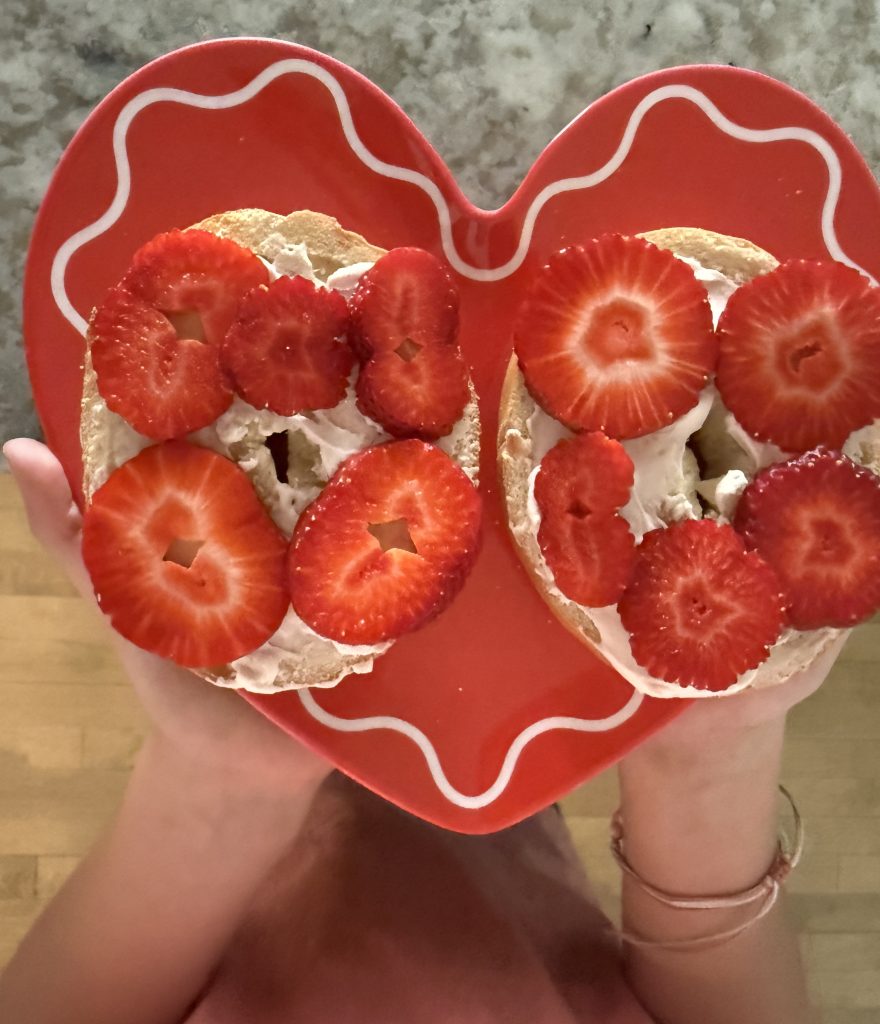 *Skye told me to blog about her favorite recipe she has created. Let us know if anyone tries it so I can tell her:) Toasted bagel, strawberry cream cheese, cut up strawberries.