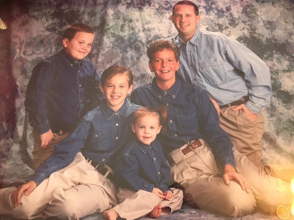 “Many questions remain for me about our family portrait but the two that top the list are why is my stepdad is wearing a different shade of denim and why did my sister go with the bare feet?”