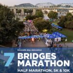 The 7 Bridges Marathon events start at Coolidge Park near the Big Blue Rhino (and the Chattanooga Theatre) on Tremont