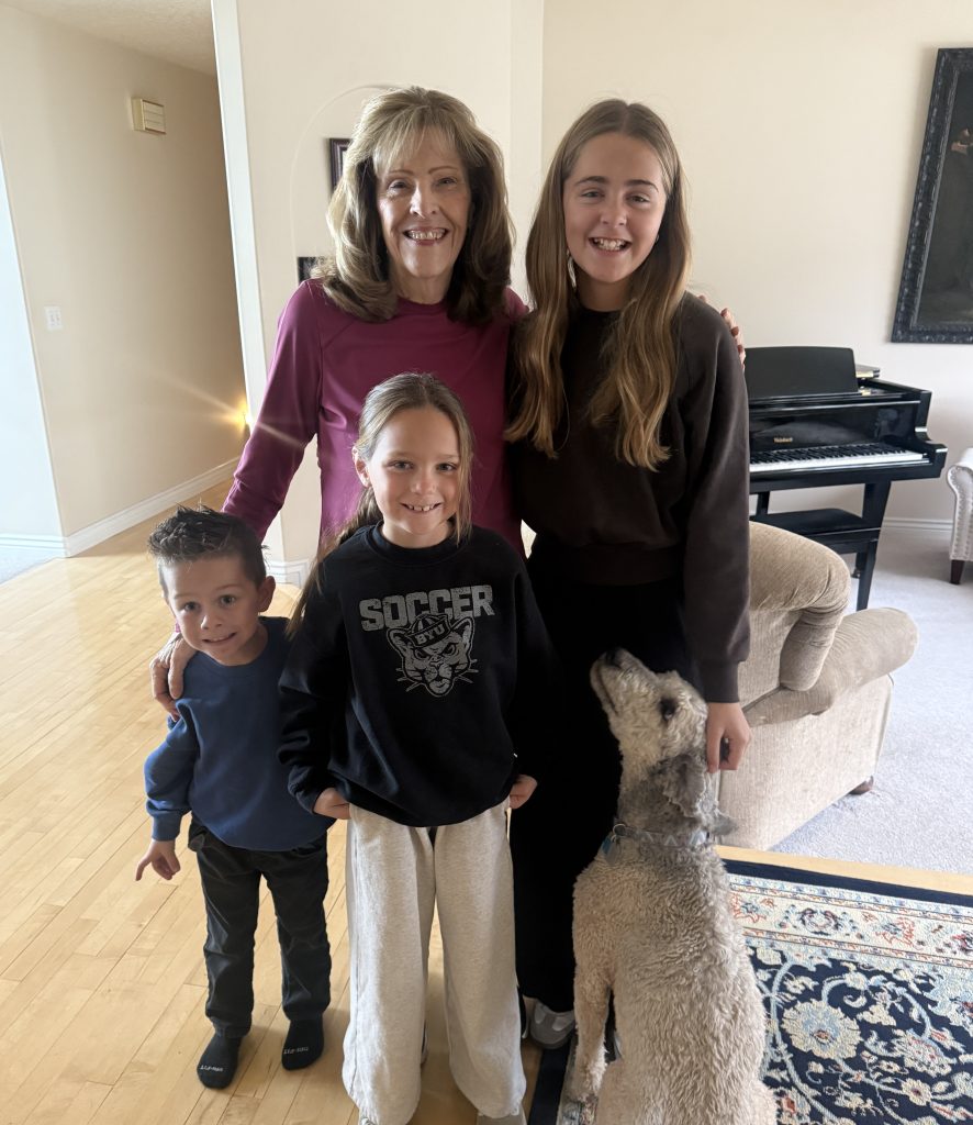 We got to see my mom in the morning, and her dog is obsessed with Brooke.